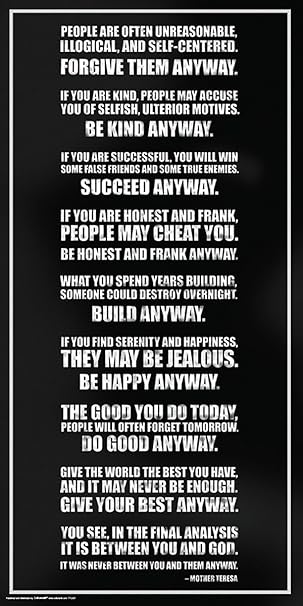 Mother Teresa Quotes Be Kind Anyway. If you find serenity and happiness, they may be jealous of you. Your true character is most accurately what you spend years building, someone could destroy overnight: